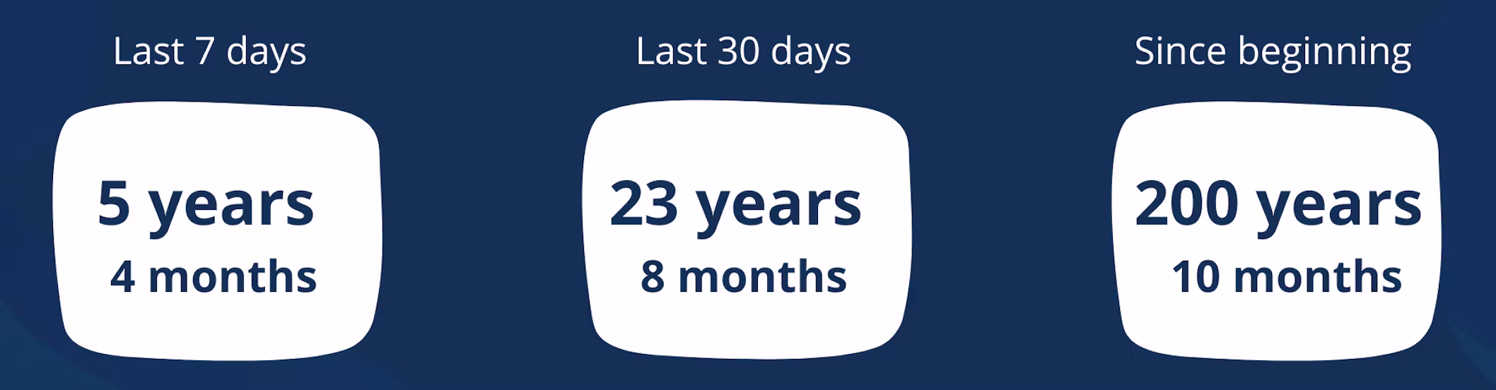• Last 7 days: 5 years 4 months 2 days 2 hours 32 minutes 46 seconds